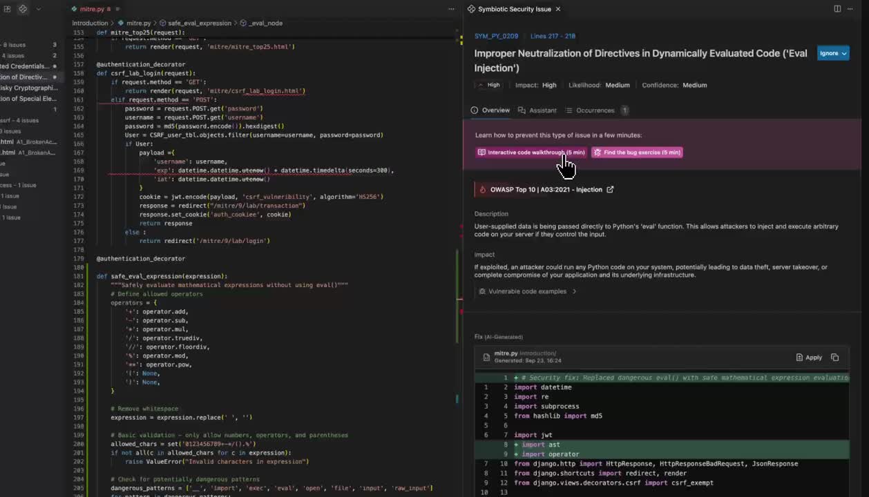 With in-IDE, in-context trainings and AI assistant, understand the why, not just the what, right when it matters most.